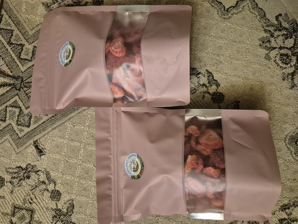 Saját termelesből származó eper, fagyasztva szárítva. (tudjátok nagyon egeészséges, nasiként is vagy akármilyen ételhez hozzá kombinálva) Miért válassza a liofilizált termékeinket? Az előnyök dióhéjban Hosszú eltarthatóság A mikroorganizmusok és enzimek aktivitását minimálisra csökkenti, így az ételek akár 25 évig is eltarthatók megfelelő csomagolásban. Tápérték megőrzése A liofilizált ételek megőrzik eredeti ízüket, színüket és tápanyagtartalmukat – az ízélmény garantált! :):):):) Könnyű szállítás A víz eltávolítása miatt az élelmiszerek súlya jelentősen csökken, ami ideális túrázáshoz, kempingezéshez vagy nagy mennyiségek tárolásához.