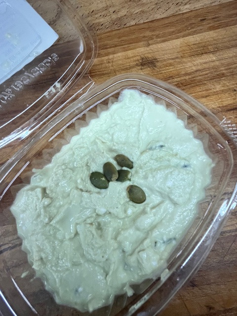 Krémsajt hidegen sajtolt tökmagolajjal és pirított töknómag darabokkal.