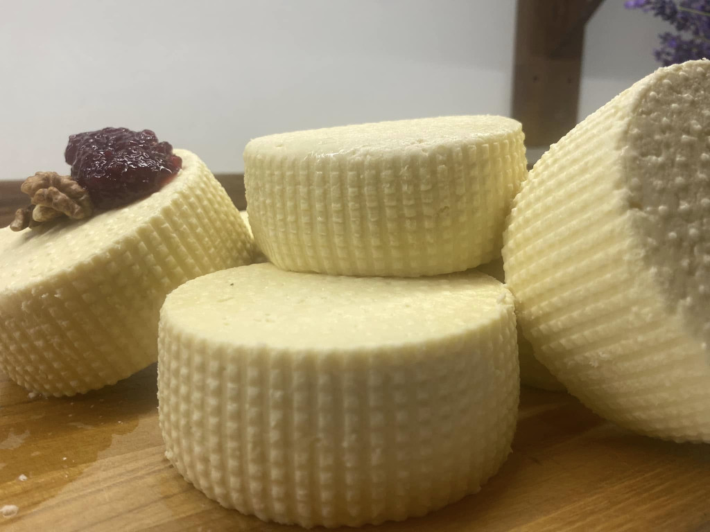 Friss tehéntejből készült lágy gomolya sajt fokhagymás ízben.