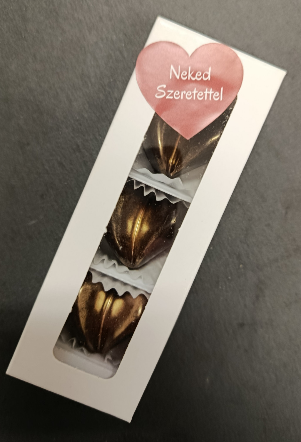 3 darabos bonbon box. 70%os belga étcsokoládé, 3 darab mandula töltelékkel.