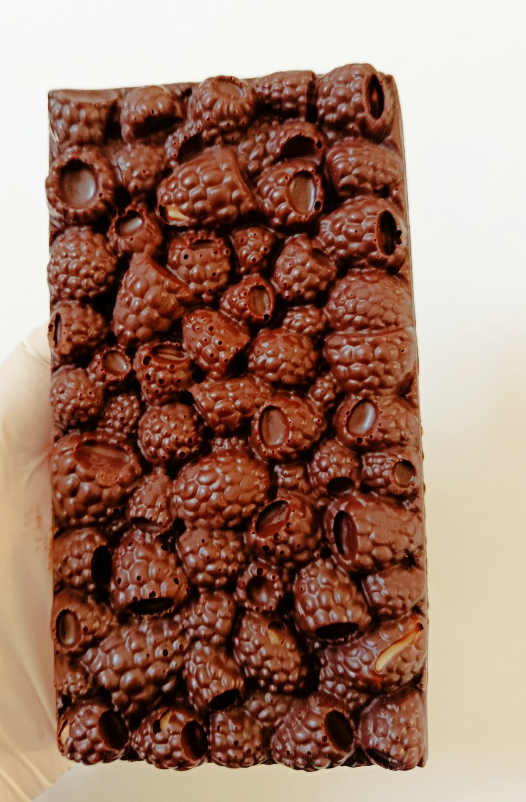 Málna motívumú étcsokoládé tábla pirított hántol egész mandulával gazdagon. Ablakos dobozban