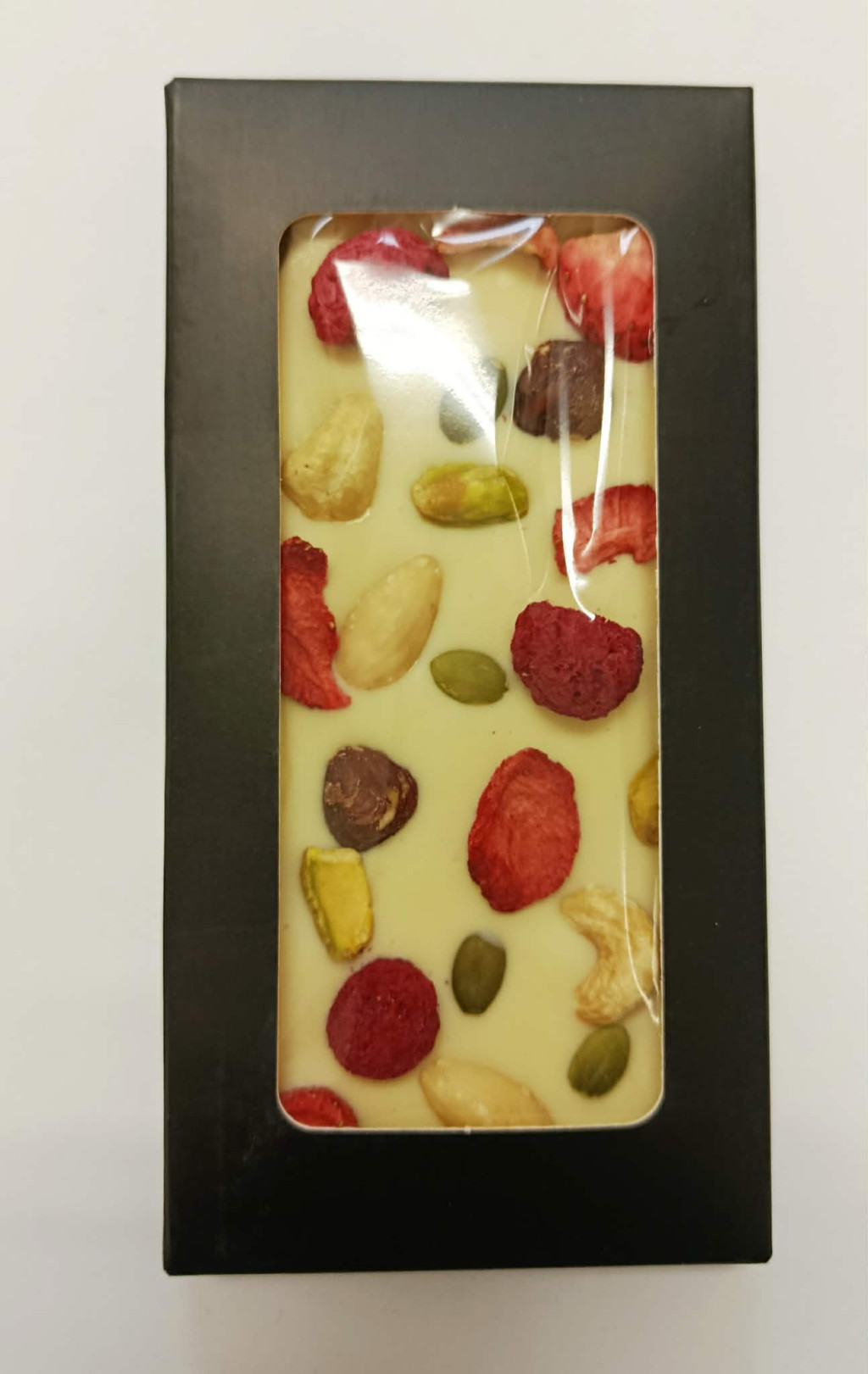 Fehércsokoládé tábla gyümölcsökkel, magvakkal. Egyedi megjelenés