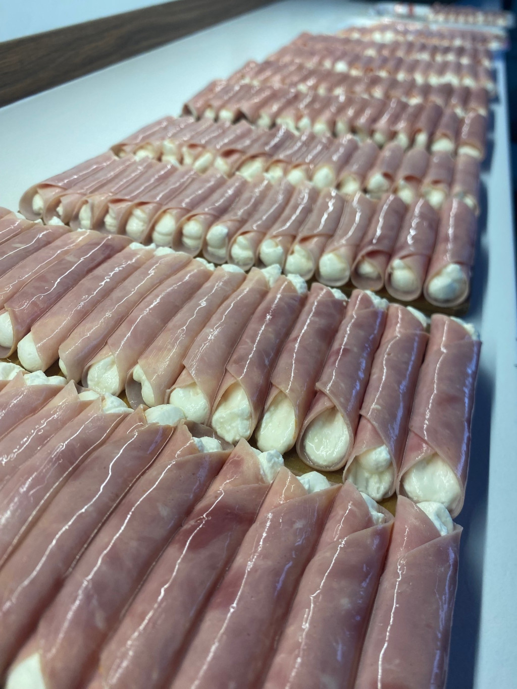Sonkatekercs tormás krémsajttal töltve aszpikban, előre csomagolva.